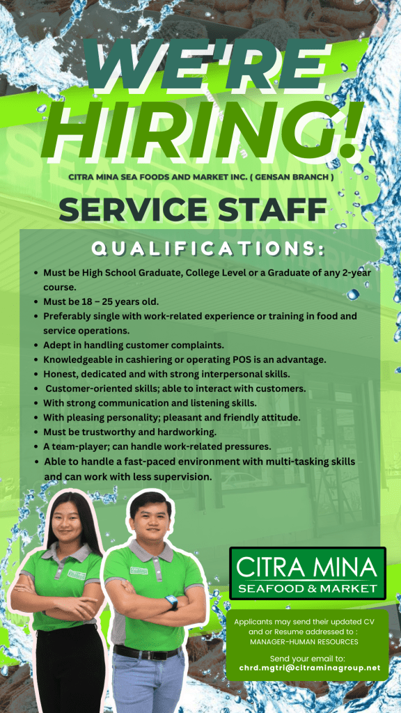 - Knowledgeable in cashiering or operating POS is an advantage.
